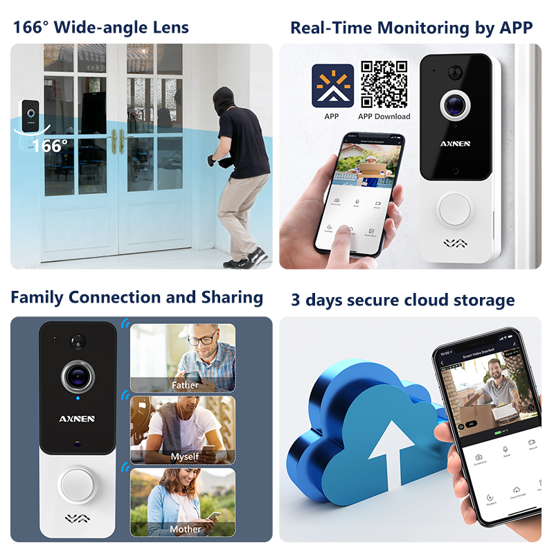 Installed with a 166 degree wide- angle lens, provide a clear and wide field of view outside the door.