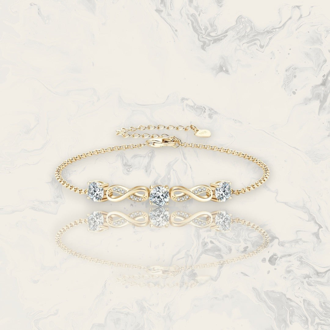 The infinity symbol represents love without limits – a bond that never ends. Our Infinity Link Bracelet captures this beautiful sentiment with three brilliant moissanite stones, set in a graceful infinity design that sparkles with every movement.