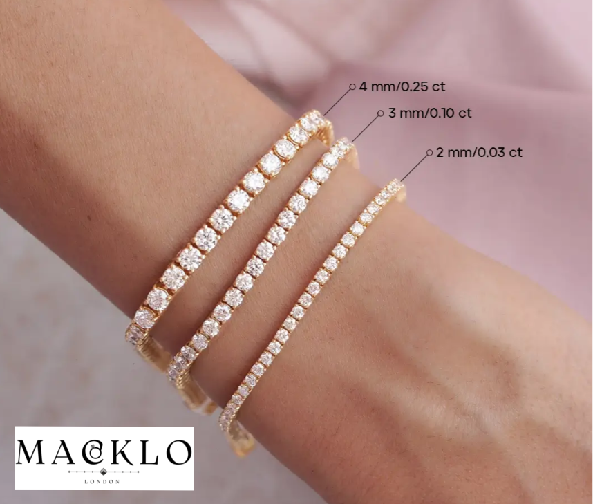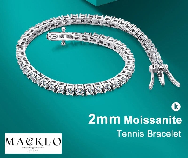 Titan Tennis Bracelet – 2mm / 4mm Moissanite, 925 Silver, 18K Gold Plated, GRA Certified
