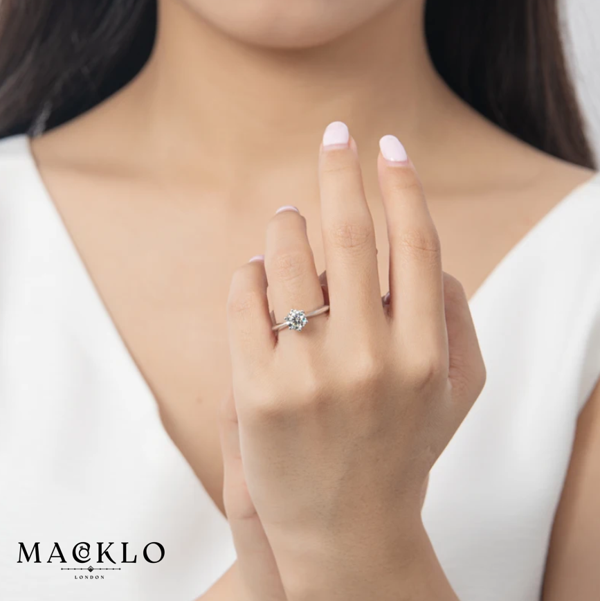 Luna Solitaire Ring – 0.5ct to 3ct Moissanite, 925 Sterling Silver, GRA Certified