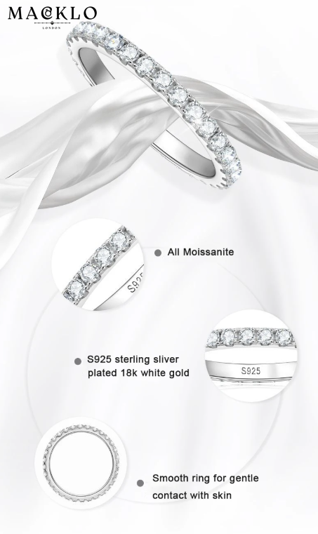 Eternal Band Ring – 2mm Moissanite Eternity Ring, 925 Silver, GRA Certified
